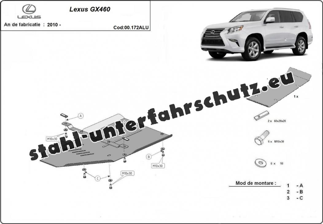 Die Abschirmung schützt: getriebe . Lexus GX460 - 2010 und 2025. Der Unterfahrschutz ist neu und passt perfekt für alle Lexus GX460 versionen, die zwischen 2010 und 2025 hergestellt wurden.Aus Aluminiumblech angefertigt mit einer Stärke von 4 mm. Die Schilde bestehen aus Aluminium, aber die Befestigungshalterungen bestehen aus Stahl. Schrauben, Mutter, Klips - alle Befestigungszubehör sind im Lieferung enthalten. Um mehr Schutz zu bieten gegen Korrosion wird der Unterfahrschutz elektrostatisch besprüht (Pulverbeschichtet) und bei 200o eingebrannt bzw. getrocknet. |