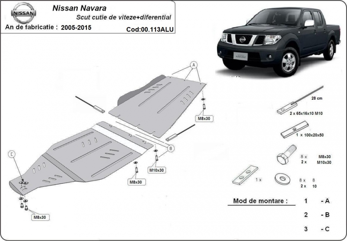 Die Abschirmung schützt: getriebe, Verteilergetriebe . Nissan Navara - 2005 und 2015. Der Unterfahrschutz ist neu und passt perfekt für alle Nissan Navara versionen, die zwischen 2005 und 2015 hergestellt wurden.Aus Aluminiumblech angefertigt mit einer Stärke von 4 mm. Die Schilde bestehen aus Aluminium, aber die Befestigungshalterungen bestehen aus Stahl. Schrauben, Mutter, Klips - alle Befestigungszubehör sind im Lieferung enthalten. Um mehr Schutz zu bieten gegen Korrosion wird der Unterfahrschutz elektrostatisch besprüht (Pulverbeschichtet) und bei 200o eingebrannt bzw. getrocknet. |