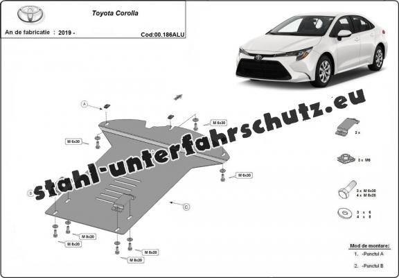 Die Abschirmung schützt: Katalysator . Toyota Corolla - 2019 und 2025. Der Unterfahrschutz ist neu und passt perfekt für alle Toyota Corolla versionen, die zwischen 2019 und 2025 hergestellt wurden.Aus Aluminiumblech angefertigt mit einer Stärke von 3 mm. Die Schilde bestehen aus Aluminium, aber die Befestigungshalterungen bestehen aus Stahl. Schrauben, Mutter, Klips - alle Befestigungszubehör sind im Lieferung enthalten. Um mehr Schutz zu bieten gegen Korrosion wird der Unterfahrschutz elektrostatisch besprüht (Pulverbeschichtet) und bei 200o eingebrannt bzw. getrocknet. |