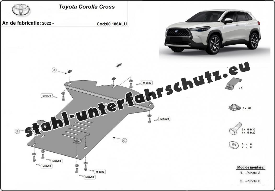 Die Abschirmung schützt: Katalysator . Toyota Corolla Cross - 2022 und 2025. Der Unterfahrschutz ist neu und passt perfekt für alle Toyota Corolla Cross versionen, die zwischen 2022 und 2025 hergestellt wurden.Aus Aluminiumblech angefertigt mit einer Stärke von 3 mm. Die Schilde bestehen aus Aluminium, aber die Befestigungshalterungen bestehen aus Stahl. Schrauben, Mutter, Klips - alle Befestigungszubehör sind im Lieferung enthalten. Um mehr Schutz zu bieten gegen Korrosion wird der Unterfahrschutz elektrostatisch besprüht (Pulverbeschichtet) und bei 200o eingebrannt bzw. getrocknet. |