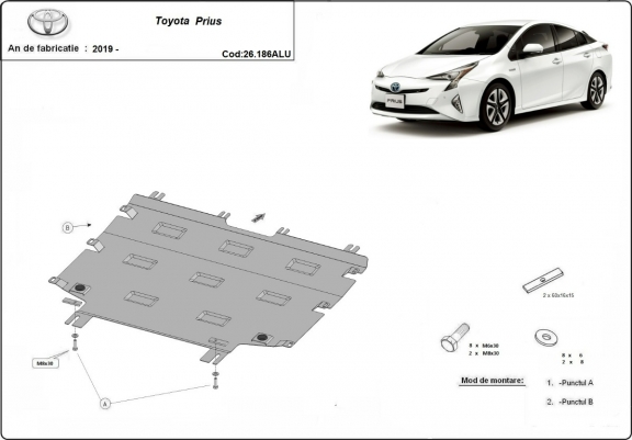 Die Abschirmung schützt: motor, getriebe . Toyota Prius - 2019 und 2026. Der Unterfahrschutz ist neu und passt perfekt für alle Toyota Prius versionen, die zwischen 2019 und 2026 hergestellt wurden.Aus Aluminiumblech angefertigt mit einer Stärke von 3 mm. Die Schilde bestehen aus Aluminium, aber die Befestigungshalterungen bestehen aus Stahl. Schrauben, Mutter, Klips - alle Befestigungszubehör sind im Lieferung enthalten. Um mehr Schutz zu bieten gegen Korrosion wird der Unterfahrschutz elektrostatisch besprüht (Pulverbeschichtet) und bei 200o eingebrannt bzw. getrocknet. |