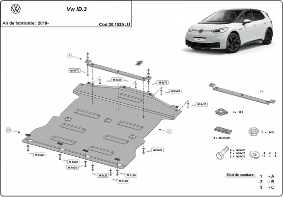 Aluminium Unterfahrschutz für Motor der Marke Volkswagen ID.3 (2019-2026)