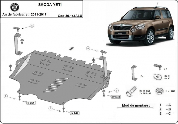 Aluminium Unterfahrschutz für Motor und Getriebe für den Skoda Yeti (2011-2017)