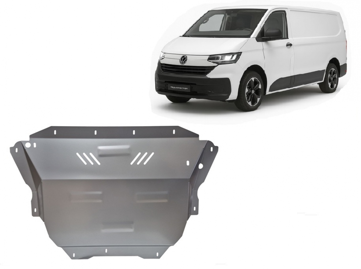 Die Abschirmung schützt: motor, getriebe, kühler . Volkswagen Transporter T7 Van - 2023 und 2026. Der Unterfahrschutz ist neu und passt perfekt für alle Volkswagen Transporter T7 Van versionen, die zwischen 2023 und 2026 hergestellt wurden.Aus Aluminiumblech angefertigt mit einer Stärke von 3 mm. Die Schilde bestehen aus Aluminium, aber die Befestigungshalterungen bestehen aus Stahl. Schrauben, Mutter, Klips - alle Befestigungszubehör sind im Lieferung enthalten. Um mehr Schutz zu bieten gegen Korrosion wird der Unterfahrschutz elektrostatisch besprüht (Pulverbeschichtet) und bei 200o eingebrannt bzw. getrocknet. |