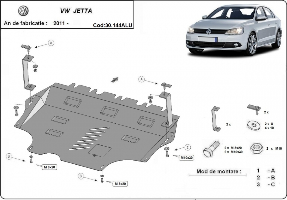 Die Abschirmung schützt: motor, getriebe, kühler . VW Jetta - 2011 und 2017. Der Unterfahrschutz ist neu und passt perfekt für alle VW Jetta versionen, die zwischen 2011 und 2017 hergestellt wurden.Aus Aluminiumblech angefertigt mit einer Stärke von 3 mm. Die Schilde bestehen aus Aluminium, aber die Befestigungshalterungen bestehen aus Stahl. Schrauben, Mutter, Klips - alle Befestigungszubehör sind im Lieferung enthalten. Um mehr Schutz zu bieten gegen Korrosion wird der Unterfahrschutz elektrostatisch besprüht (Pulverbeschichtet) und bei 200o eingebrannt bzw. getrocknet. |
