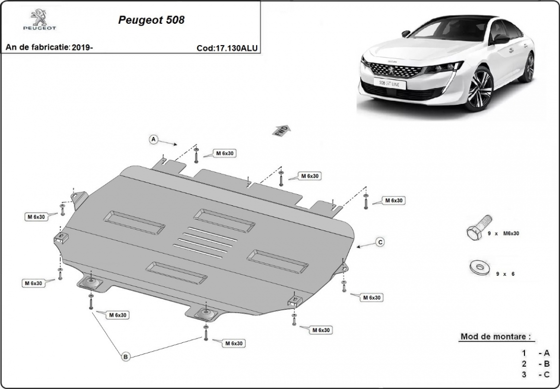 Die Abschirmung schützt: motor, getriebe, kühler, vordere stossfänger . Peugeot 508 - 2019 und 2026. Der Unterfahrschutz ist neu und passt perfekt für alle Peugeot 508 versionen, die zwischen 2019 und 2026 hergestellt wurden.Aus Aluminiumblech angefertigt mit einer Stärke von 3 mm. Die Schilde bestehen aus Aluminium, aber die Befestigungshalterungen bestehen aus Stahl. Schrauben, Mutter, Klips - alle Befestigungszubehör sind im Lieferung enthalten. Um mehr Schutz zu bieten gegen Korrosion wird der Unterfahrschutz elektrostatisch besprüht (Pulverbeschichtet) und bei 200o eingebrannt bzw. getrocknet. |