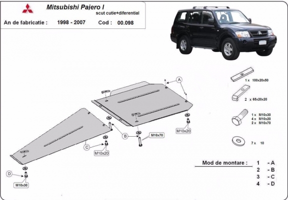Getriebe und Differentialschutz aus Stahl für Mitsubishi Pajero Sport 1 (1998-2007)
