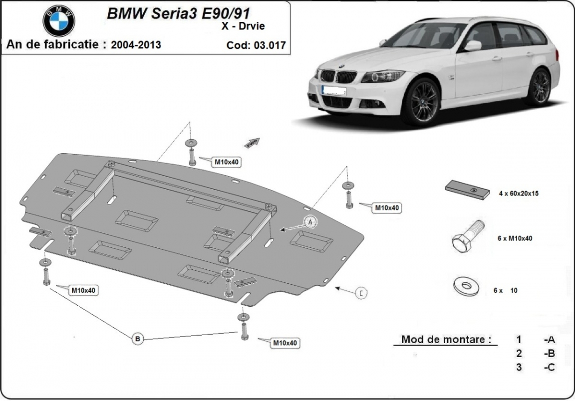 Kühlerschutz für unten aus Stahl für BMW seria 3 - E90 (2004-2013)