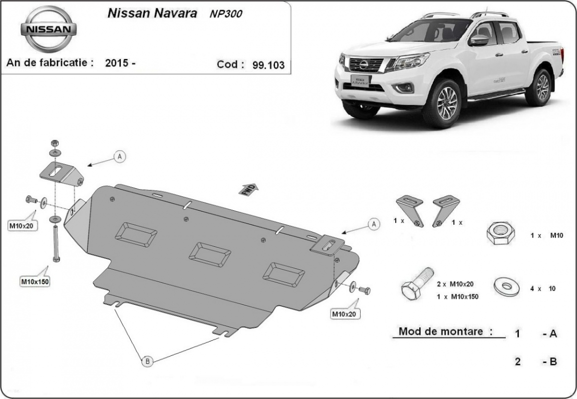 Die Abschirmung schützt: kühler . Nissan Navara NP300 - 2015 und 2021. Der Unterfahrschutz ist neu und passt perfekt für alle Nissan Navara NP300 versionen, die zwischen 2015 und 2021 hergestellt wurden.Aus Stahlblech angefertigt mit einer Stärke von 2 mm. Schrauben, Mutter, Klips - alle Befestigungszubehör sind im Lieferung enthalten. Um mehr Schutz zu bieten gegen Korrosion wird der Unterfahrschutz elektrostatisch besprüht (Pulverbeschichtet) und bei 200o eingebrannt bzw. getrocknet. |