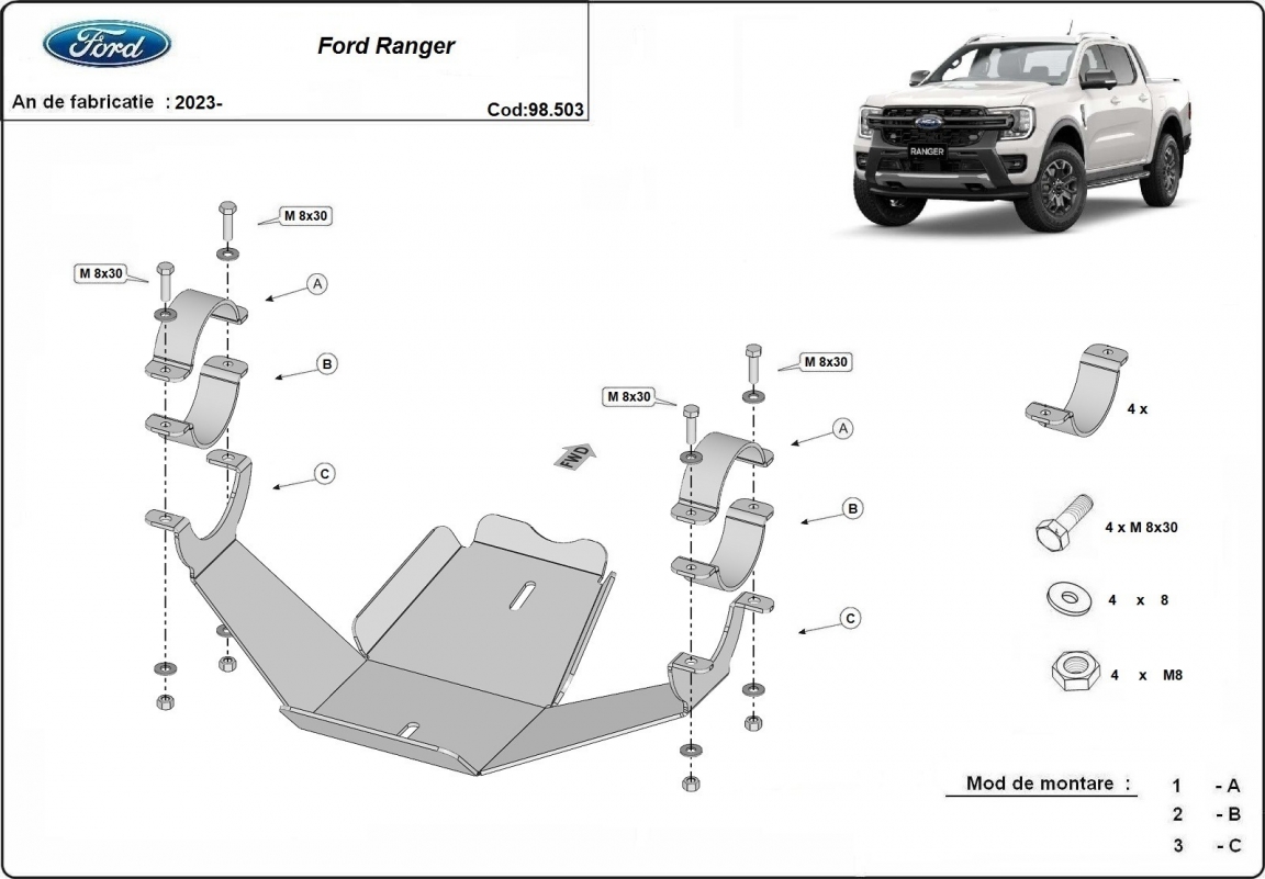 Stahlschutz für Treibstofftank der Marke Ford Ranger (MB3G9A147CF; 2643728)