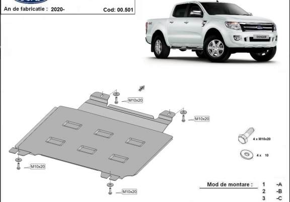 Die Abschirmung schützt: getriebe, Verteilergetriebe . Ford Ranger - 2020 und 2023. Der Unterfahrschutz ist neu und passt perfekt für alle Ford Ranger versionen, die zwischen 2020 und 2023 hergestellt wurden.Aus Stahlblech angefertigt mit einer Stärke von 2 mm. Schrauben, Mutter, Klips - alle Befestigungszubehör sind im Lieferung enthalten. Um mehr Schutz zu bieten gegen Korrosion wird der Unterfahrschutz elektrostatisch besprüht (Pulverbeschichtet) und bei 200o eingebrannt bzw. getrocknet. |