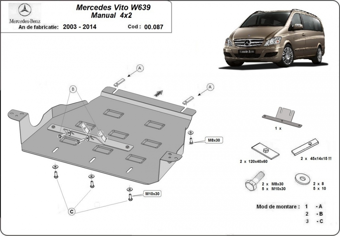 Stahl Getriebe Schutz für Mercedes Viano W639 - 2.2 D 4x2 (2003-2014)