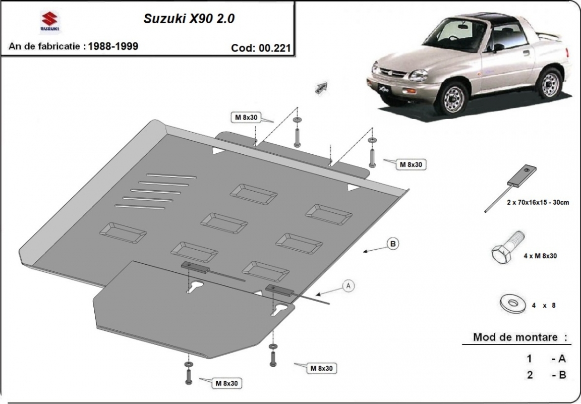 Die Abschirmung schützt: getriebe, Verteilergetriebe . Suzuki X90 - 1988 und 1999. Der Unterfahrschutz ist neu und passt perfekt für den Suzuki X90 mit den folgenden Motor- / Antriebsversionen: 2.0 petrol - hergestellt zwischen 1988 und 1999.Aus Stahlblech angefertigt mit einer Stärke von 2.5 mm. Schrauben, Mutter, Klips - alle Befestigungszubehör sind im Lieferung enthalten. Um mehr Schutz zu bieten gegen Korrosion wird der Unterfahrschutz elektrostatisch besprüht (Pulverbeschichtet) und bei 200o eingebrannt bzw. getrocknet. |