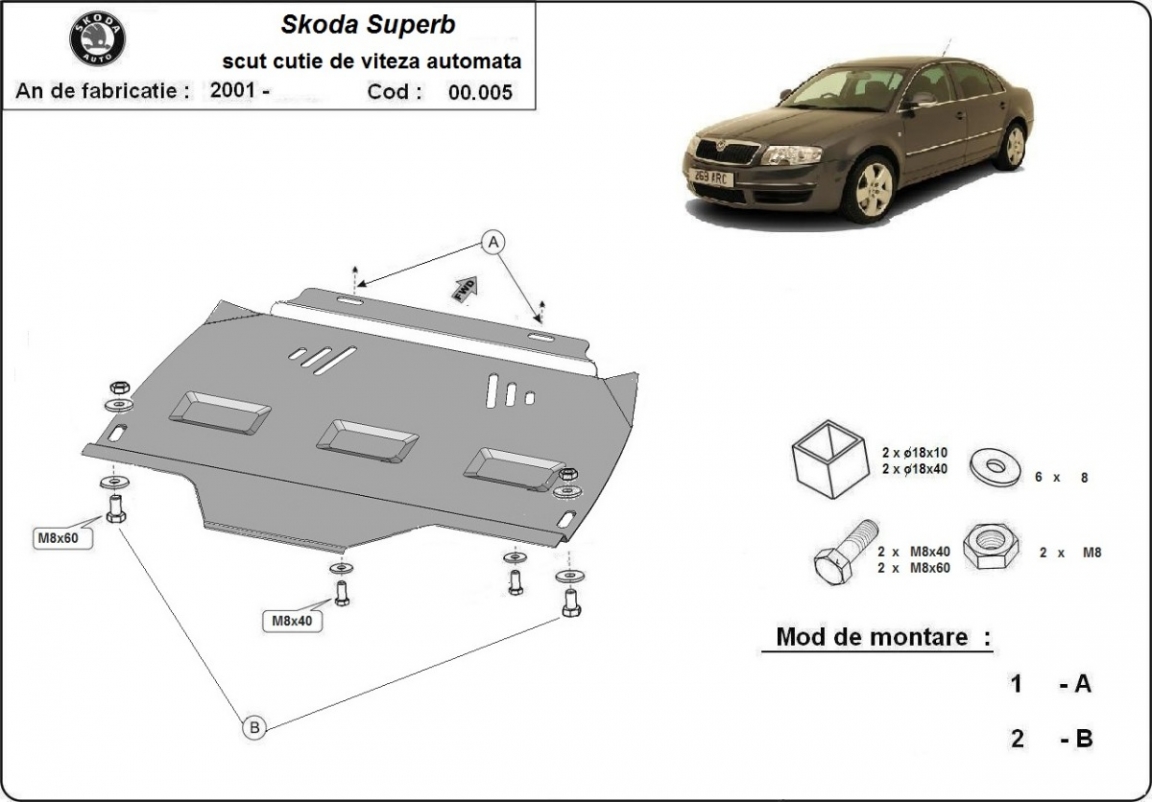 Unterfahrschutz aus Stahl für Automatikgetriebe der Marke Skoda Superb (2001-2008)