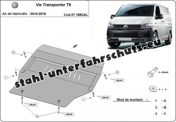 Unterfahrschutz aus verzinktem Stahl für Motor der Marke Volkswagen Transporter T6