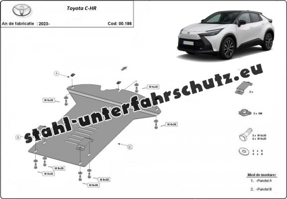 Die Abschirmung schützt: Katalysator . Toyota C-HR - 2023 und 2025. Der Unterfahrschutz ist neu und passt perfekt für alle Toyota C-HR versionen, die zwischen 2023 und 2025 hergestellt wurden.Aus Stahlblech angefertigt mit einer Stärke von 2 mm. Schrauben, Mutter, Klips - alle Befestigungszubehör sind im Lieferung enthalten. Um mehr Schutz zu bieten gegen Korrosion wird der Unterfahrschutz elektrostatisch besprüht (Pulverbeschichtet) und bei 200o eingebrannt bzw. getrocknet. |