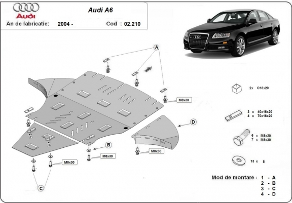 Unterfahrschutz für Motor der Marke Audi A6 mit Seitenklappen (2004-2011)