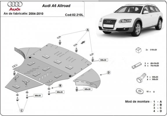 Unterfahrschutz für Motor der Marke Audi A6 Allroad 2 - für die Seiten (2005-2011)