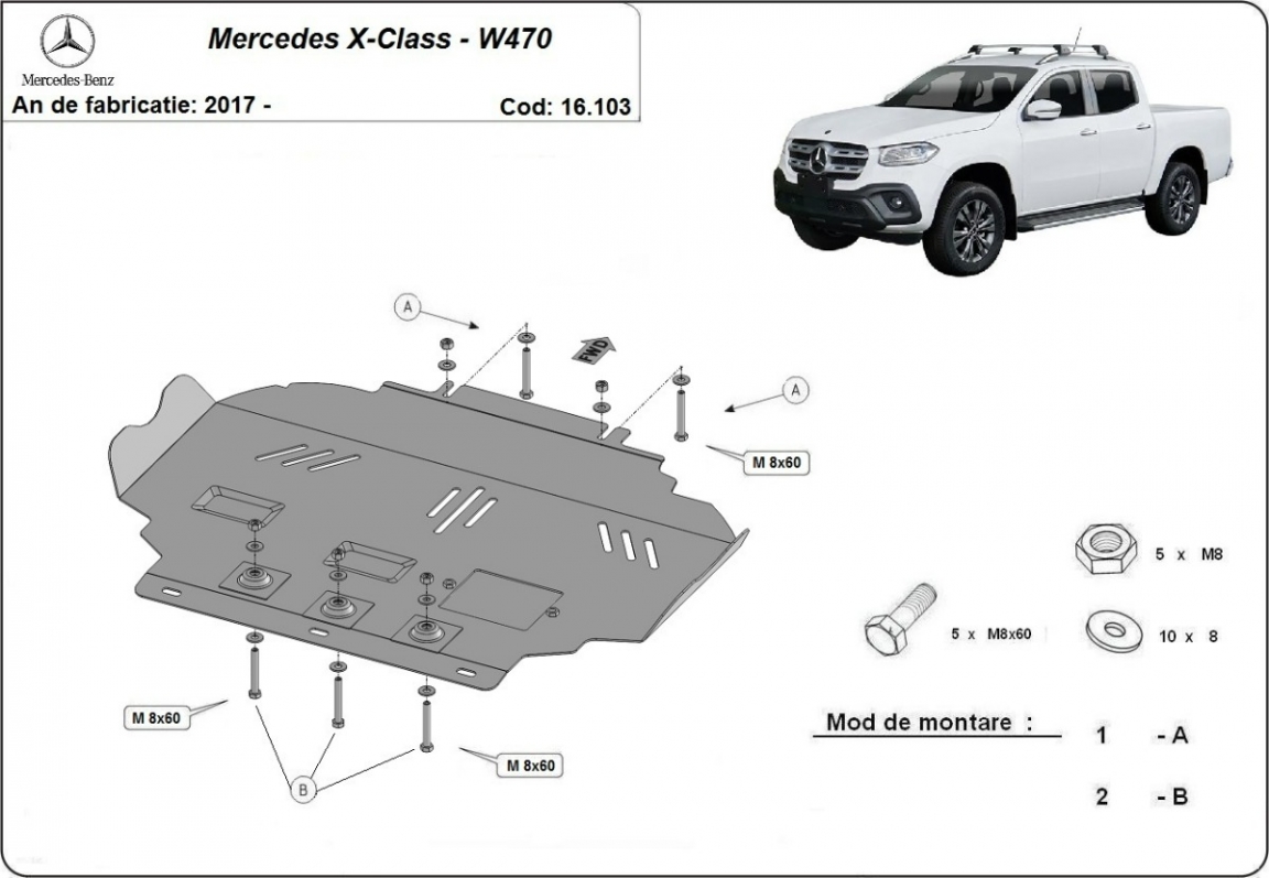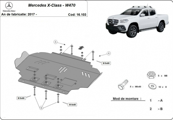 Unterfahrschutz für Motor der Marke Mercedes X-Class W470 (2017-2020)