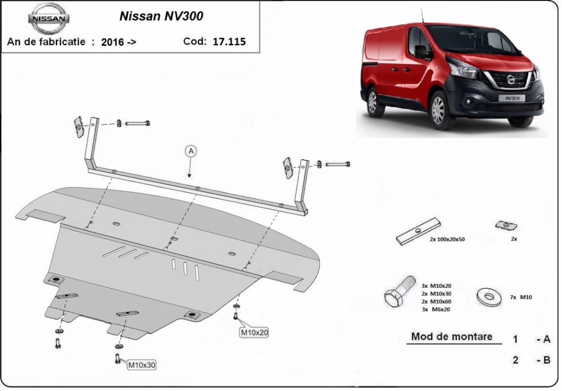 Die Abschirmung schützt: motor, getriebe, kühler, vordere stossfänger . Nissan NV300 - 2014 und 2021. Der Unterfahrschutz ist neu und passt perfekt für alle Nissan NV300 versionen, die zwischen 2014 und 2021 hergestellt wurden.Aus Stahlblech angefertigt mit einer Stärke von 2 mm. Schrauben, Mutter, Klips - alle Befestigungszubehör sind im Lieferung enthalten. Um mehr Schutz zu bieten gegen Korrosion wird der Unterfahrschutz elektrostatisch besprüht (Pulverbeschichtet) und bei 200o eingebrannt bzw. getrocknet. |