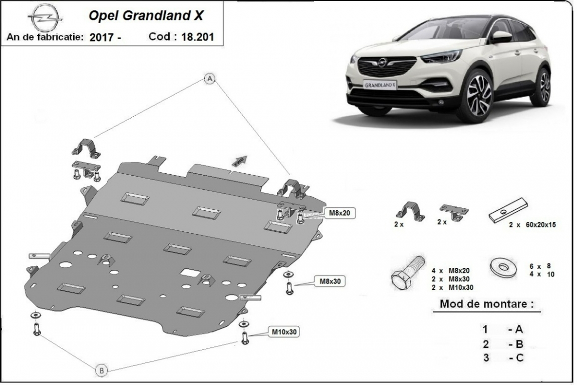 Unterfahrschutz für Motor der Marke Opel Grandland X (2017-2026)