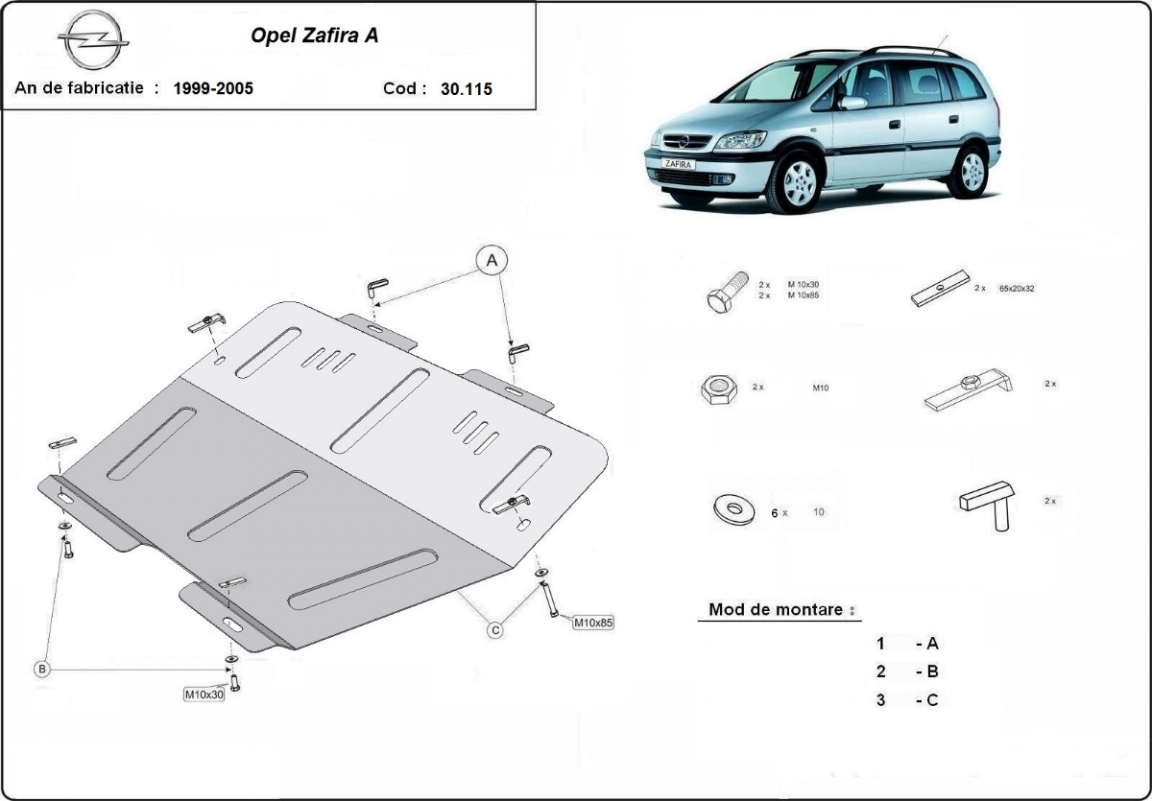 Unterfahrschutz für Motor der Marke Opel Zafira A