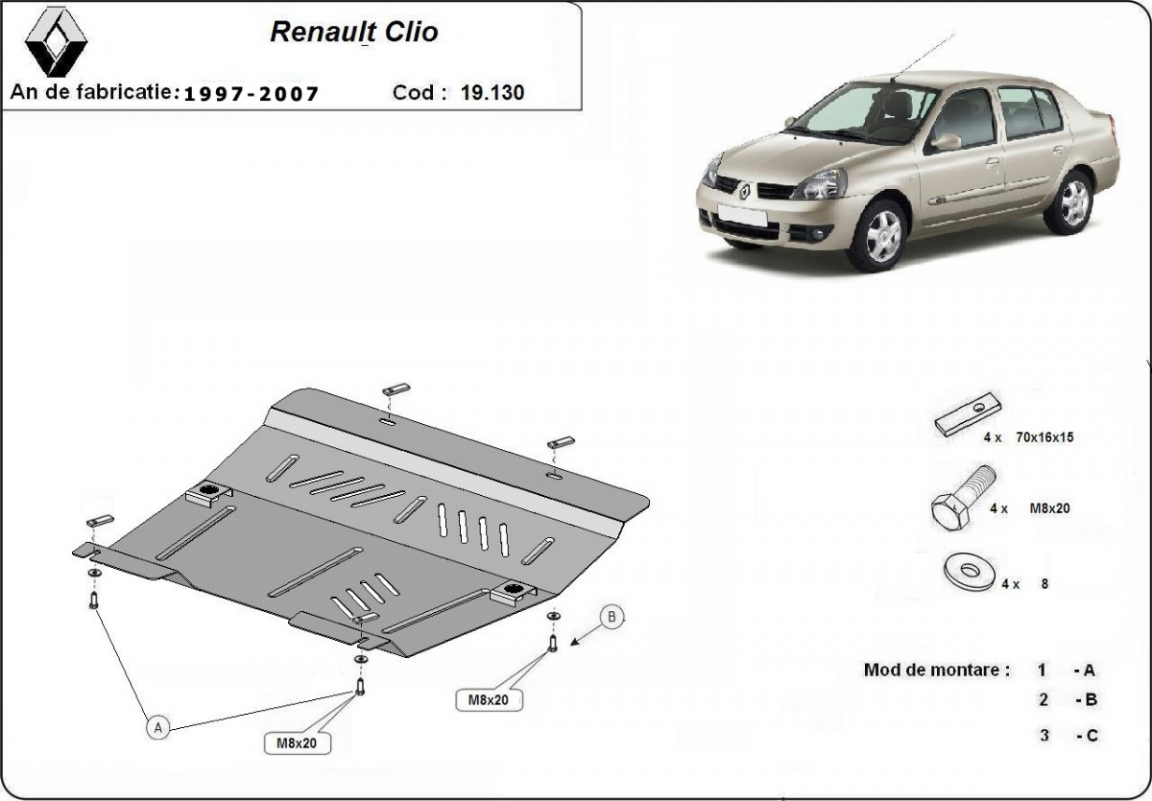 Unterfahrschutz für Motor der Marke Renault Clio 2 (1997-2007)