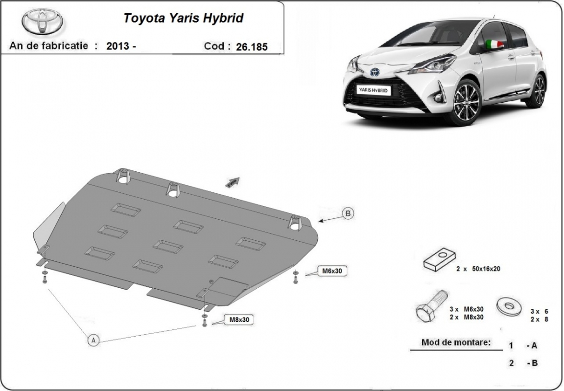 Die Abschirmung schützt: motor, getriebe, kühler . Toyota Yaris Hybrid - 2013 und 2021. Der Unterfahrschutz ist neu und passt perfekt für den Toyota Yaris Hybrid mit den folgenden Motor- / Antriebsversionen: XP150, all, Hybrid - hergestellt zwischen 2013 und 2021.Aus Stahlblech angefertigt mit einer Stärke von 2 mm. Schrauben, Mutter, Klips - alle Befestigungszubehör sind im Lieferung enthalten. Um mehr Schutz zu bieten gegen Korrosion wird der Unterfahrschutz elektrostatisch besprüht (Pulverbeschichtet) und bei 200o eingebrannt bzw. getrocknet. |