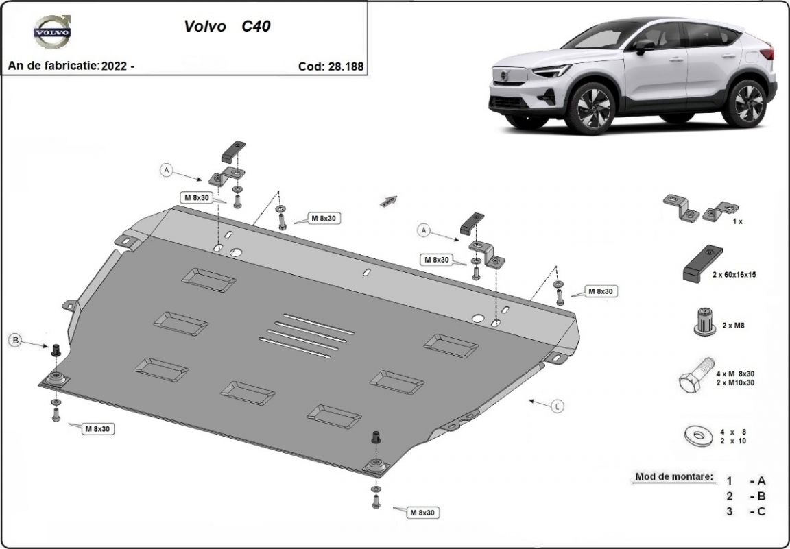 Unterfahrschutz für Motor der Marke Volvo C40 (2022-2026)