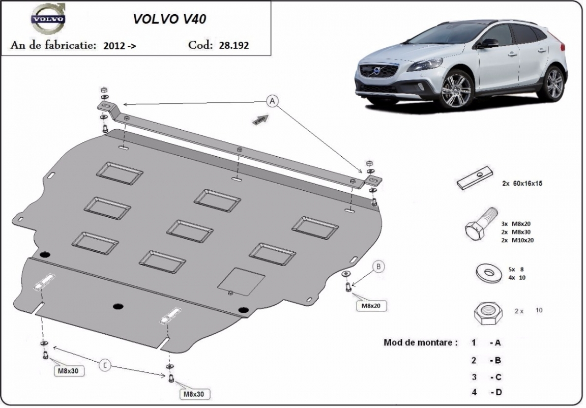 Die Abschirmung schützt: motor, getriebe, kühler . Volvo V40 - 2012 und 2019. Der Unterfahrschutz ist neu und passt perfekt für alle Volvo V40 versionen, die zwischen 2012 und 2019 hergestellt wurden.Befügt über ein Fensterchen zur Ölwanne, so dass dessen Entfernung beim Ölwechsel nicht notwendig sein wird. Aus Stahlblech angefertigt mit einer Stärke von 2 mm. Schrauben, Mutter, Klips - alle Befestigungszubehör sind im Lieferung enthalten. Um mehr Schutz zu bieten gegen Korrosion wird der Unterfahrschutz elektrostatisch besprüht (Pulverbeschichtet) und bei 200o eingebrannt bzw. getrocknet. |