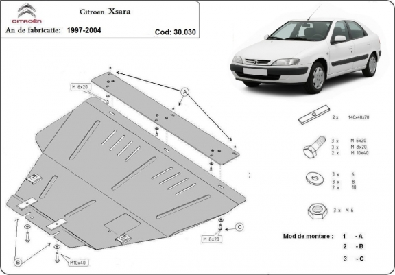 Unterfahrschutz für Motor und Getriebe aus Stahl für Citroen Xsara