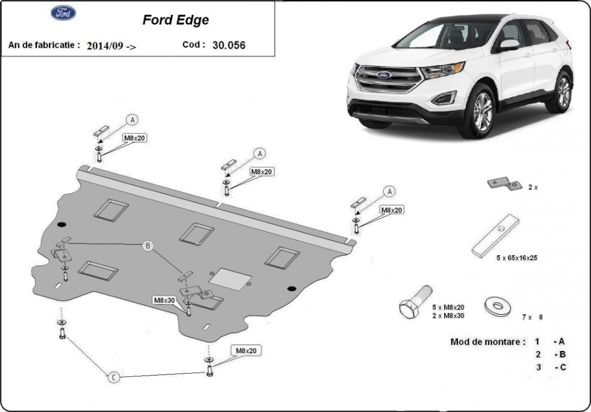 Die Abschirmung schützt: motor, getriebe, kühler . Ford Edge - 2014 und 2021. Der Unterfahrschutz ist neu und passt perfekt für alle Ford Edge versionen, die zwischen 2014 und 2021 hergestellt wurden.Aus Stahlblech angefertigt mit einer Stärke von 2 mm. Schrauben, Mutter, Klips - alle Befestigungszubehör sind im Lieferung enthalten. Um mehr Schutz zu bieten gegen Korrosion wird der Unterfahrschutz elektrostatisch besprüht (Pulverbeschichtet) und bei 200o eingebrannt bzw. getrocknet. |