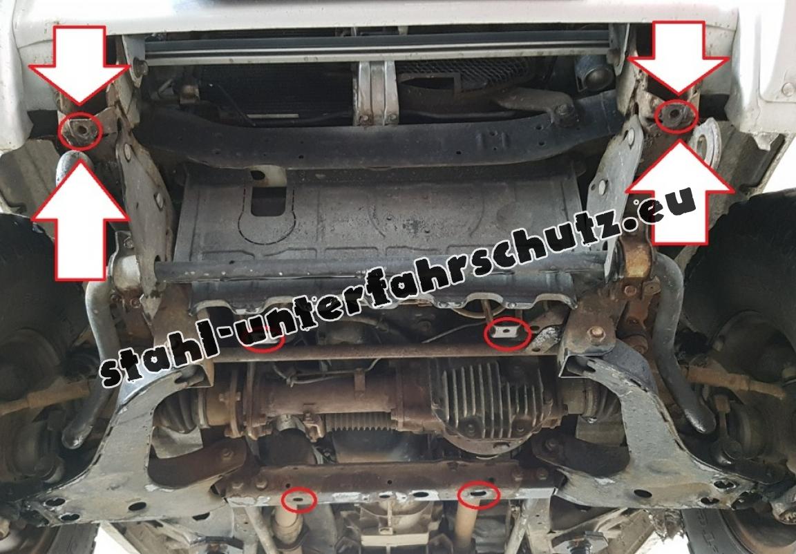 Die Abschirmung schützt: motor, kühler . Mitsubishi Pajero 3 (V60, V70) - 1999 und 2007. Der Unterfahrschutz ist neu und passt perfekt für den Mitsubishi Pajero 3 (V60, V70) mit den folgenden Motor- / Antriebsversionen: 3.5 Gdi; 2.5 Tdi; 3.2 Di-d - hergestellt zwischen 1999 und 2007.Aus Stahlblech angefertigt mit einer Stärke von 2,5 mm. Schrauben, Mutter, Klips - alle Befestigungszubehör sind im Lieferung enthalten. Um mehr Schutz zu bieten gegen Korrosion wird der Unterfahrschutz elektrostatisch besprüht (Pulverbeschichtet) und bei 200o eingebrannt bzw. getrocknet. |