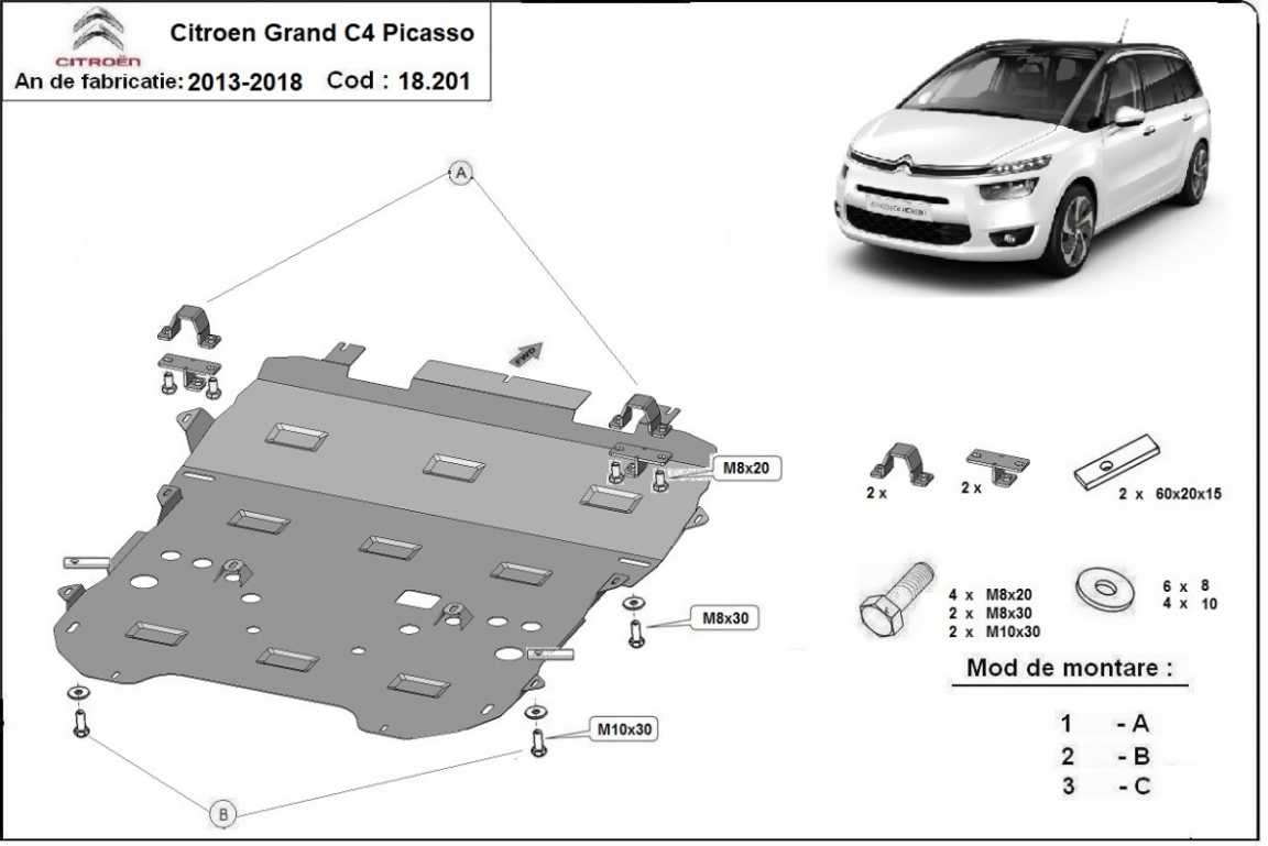 Unterfahrschutz für Motor der Marke Citroen Grand C4 Picasso (2013-2018)