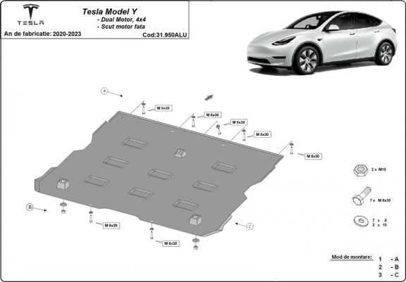 Vorderer Aluminium-Motorschutz für Elektromotor – Tesla model Y (2020-2023)